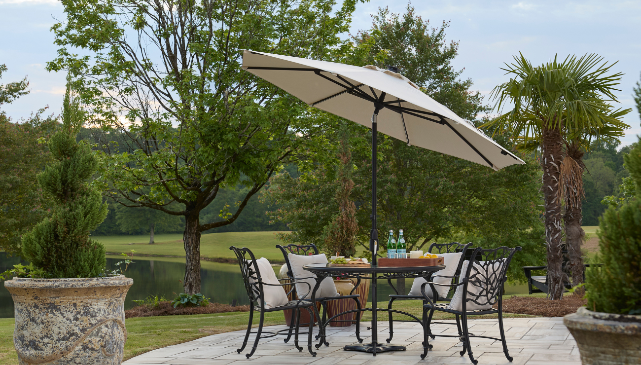 Our commitment to subtle sophistication requires that all umbrellas are produced in aluminum to prevent rusting, while the precision screw-in design ensures maximum strength and stability.