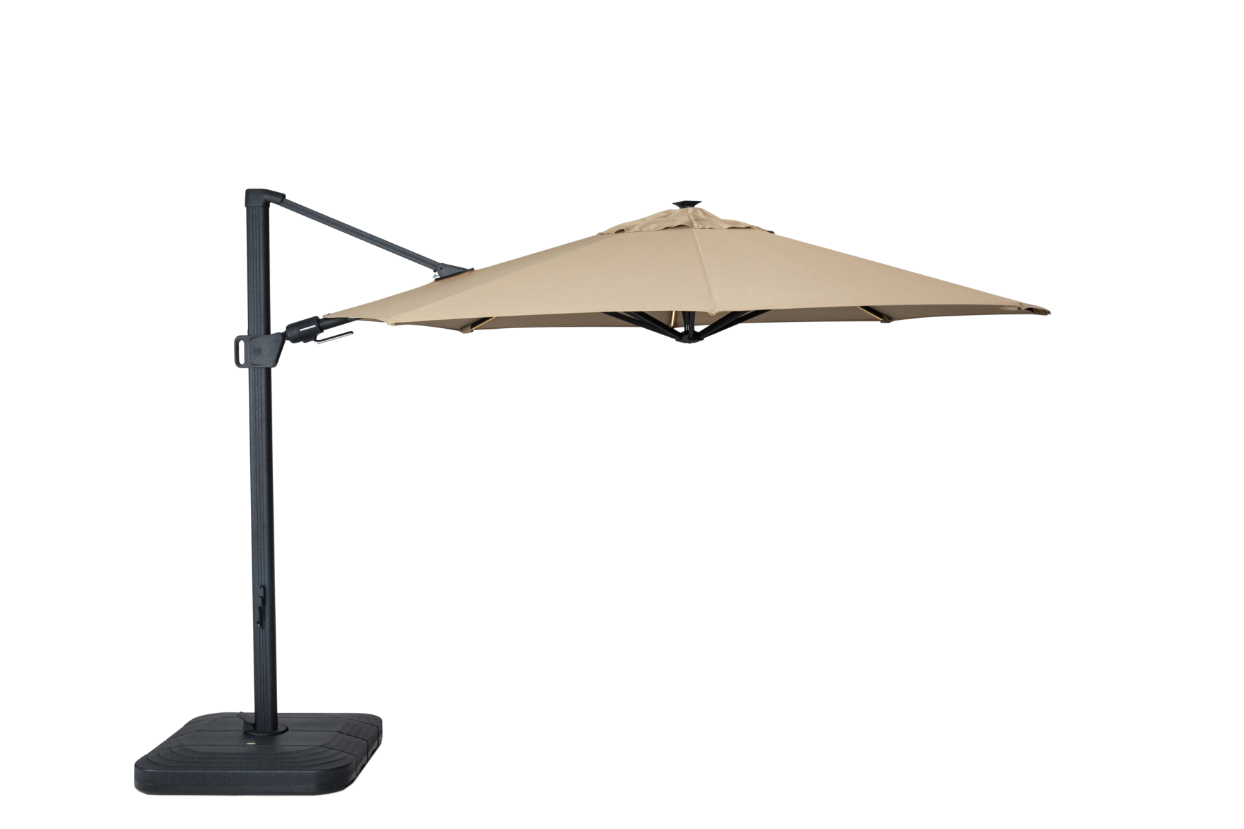 Its reinforced aluminum mast offers unmatched strength and stability in windy conditions, while the patented EZ-Tilt Handle lets you adjust the tilt angle with just one hand. Paired with our upgraded 360° foot pedal, the Zurich Aurora rotates effortlessly while staying securely anchored to its base — giving you complete shade control from any direction.